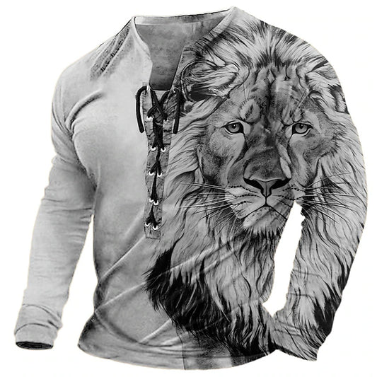 🦁🦁【S-4XL】 Moška 3D natisnjena casual levja majica Dolgi rokavi za udobje
