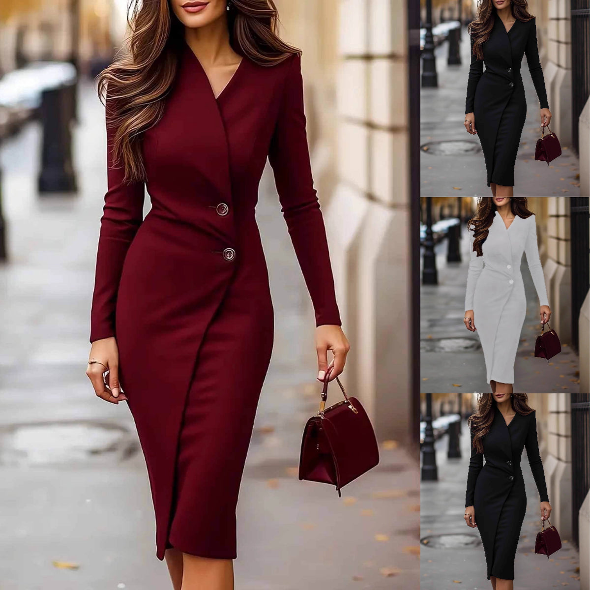 【50 % POPUSTA】Nova elegantna obleka z dolgimi rokavi in gumbi za leto 2025